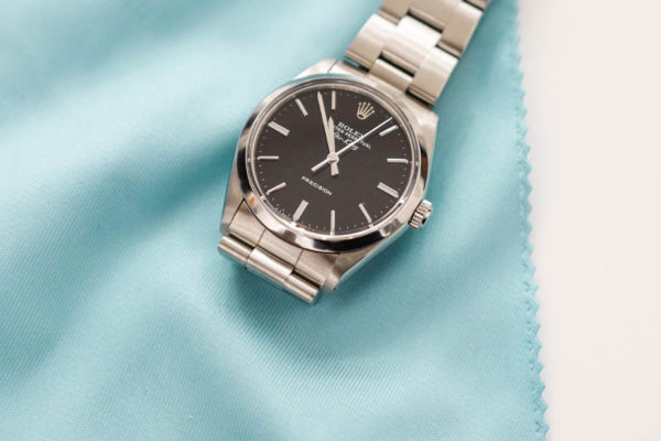 A:帰宅して時計を外したら、乾いた布でふくのが◎。布といってもマイクロファイバー等の化学繊維、いわゆるメガネ拭きがベストです。それなら既にお持ちのはず。それでも汚れが気になるようになってきたら、購入した時計店へ相談を。