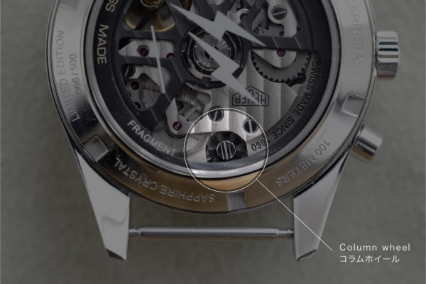 ↑コラムホイール(80年代から量産型ムーブメントが出てきたため、現在ではほとんどがカム式)
