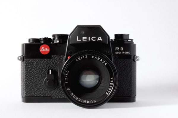 ↑上の写真のように外観の中央上部がふくらんだ、一番よく目にするカメラが「一眼レフカメラ」です。「一眼」とは眼が一つ、なので“レンズがひとつ”の意味。「レフ」はレフレックスの略。一眼レフカメラ/レフレックスカメラ、と検索するといろいろな解説が出てきます。ライカでは「ライカフレックス」「ライカR」などがその種類。ニコンでいうと「ニコンF」などが代表的です。
