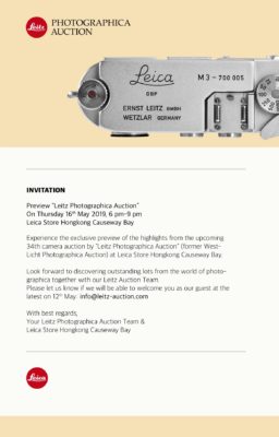 6月8日(土)にライツパーク(ドイツ)にて開催されるLeitz PHOTOGRAPHICA AUCTION。