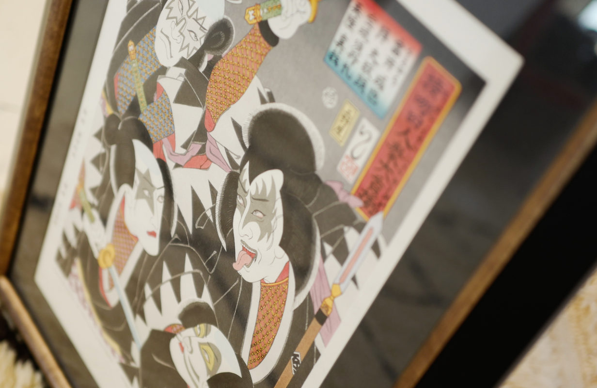 店頭のKISS浮世絵。「接吻四人衆」が日本語タイトル。たしかに!というタイトル笑