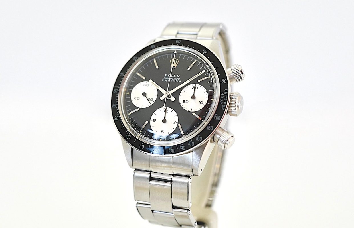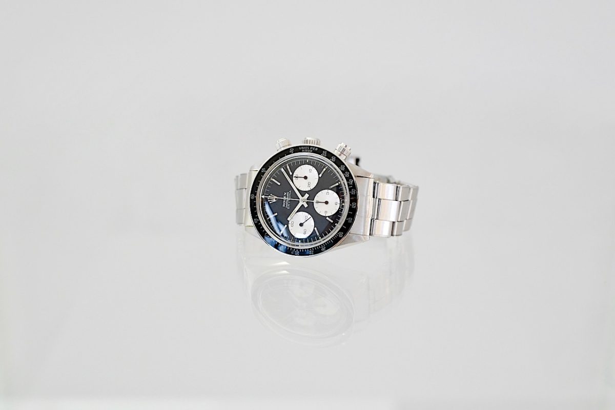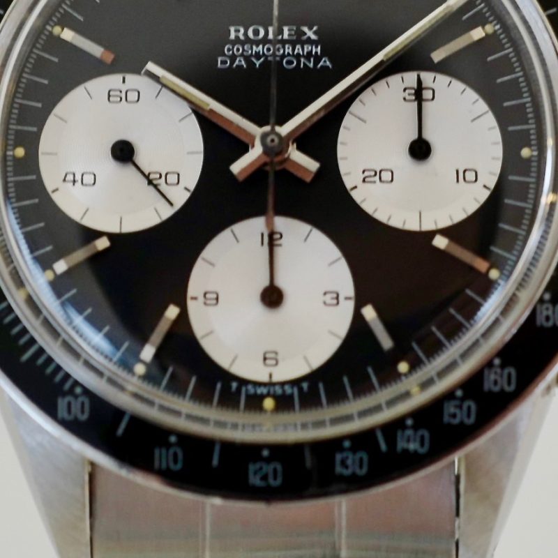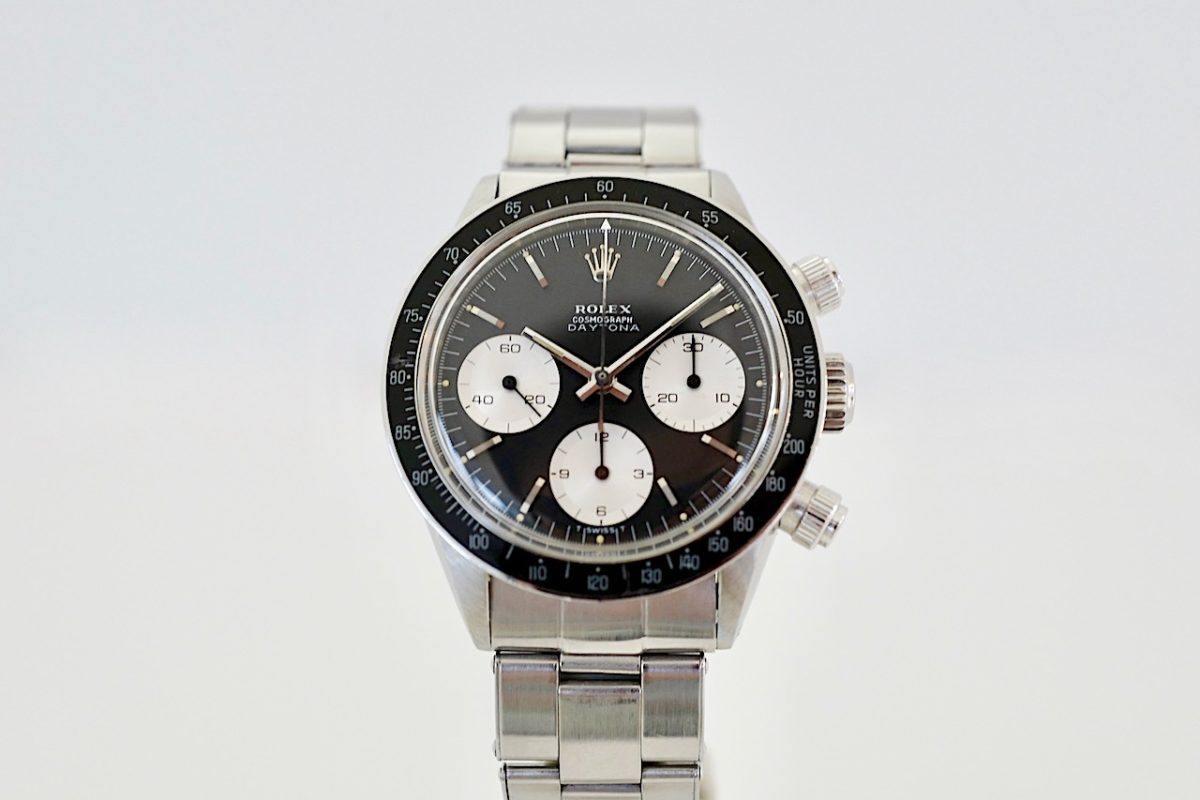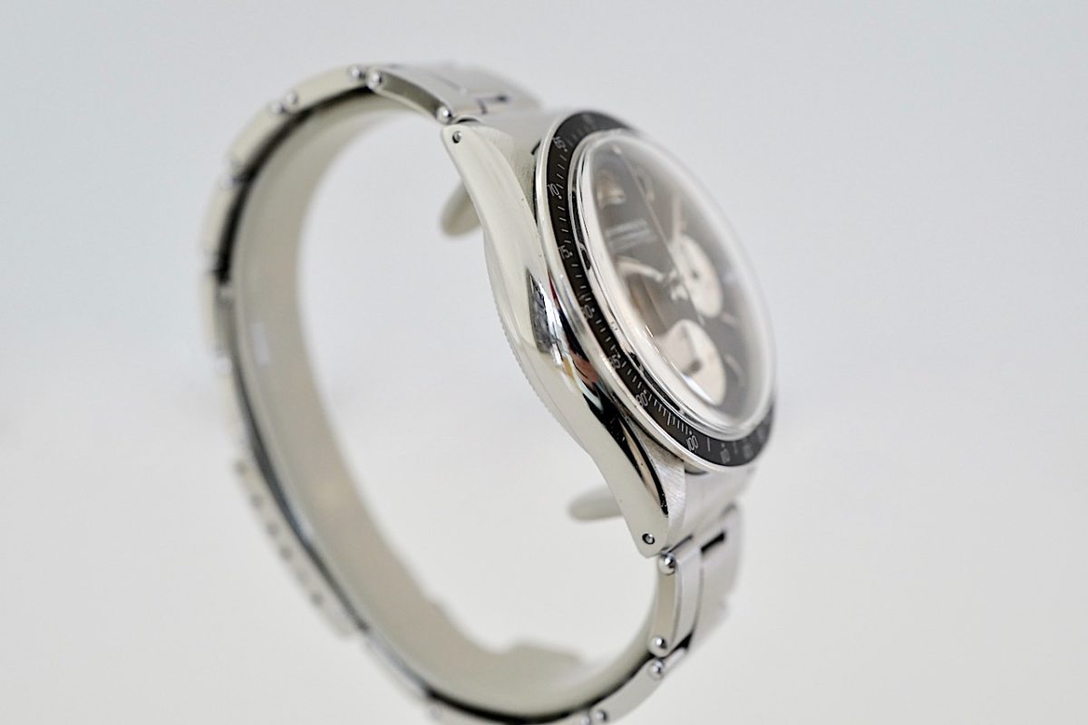 手巻きデイトナの伝説とも言えるリファレンスがこの6240。ノンオイスターケースから始まったデイトナですが、6239・6241等のノンオイスターケースの製品を作りながら防水性能を備えたネジ込み式プッシャーの開発と製品化に向けて、この6240を同時に発売しました。