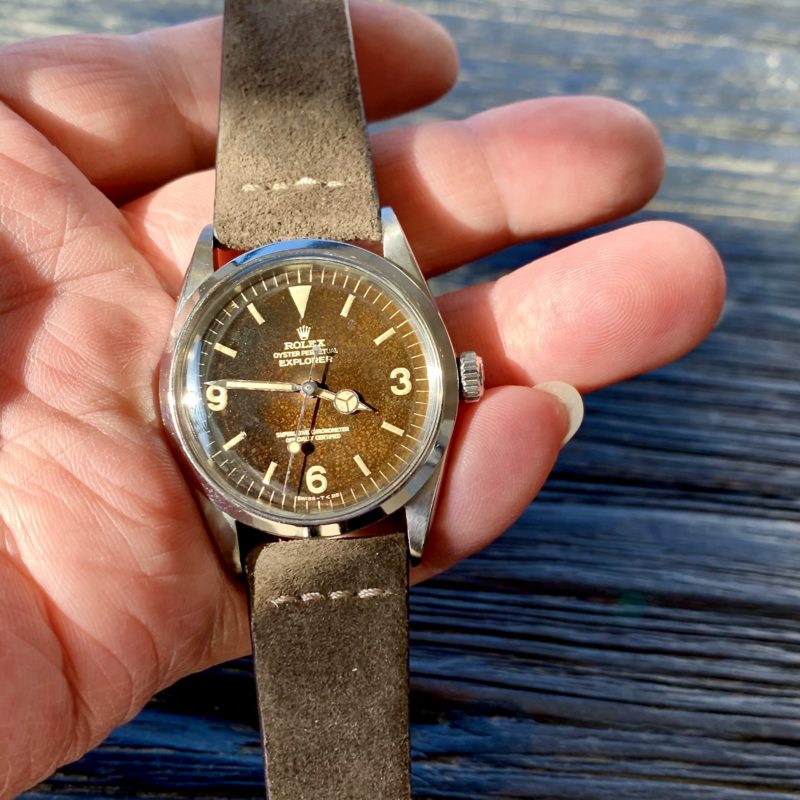 時計評論家的な方が、ハワイにあったからダイヤルが日焼けしてます、、、とか。シャツの袖から少しだけ時計が出るから、3時側だけ茶色になるですよ、、、とか。僕は無いと思います。この理論。