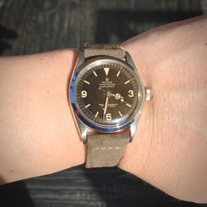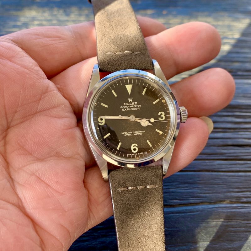 つまり、日光による日焼けではなくて塗料の経年変化によるもの。なので、1016ミラー(ミニッツサークルなし)でいうと変色するダイヤルは製造年によってほぼ断定できます。65-66年頃の文字盤が茶色く経年変化します。