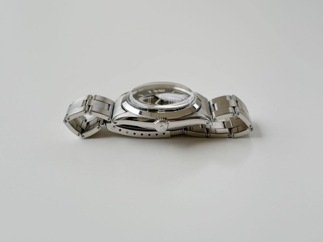 1960~1970年までは、いく通りかのリファレンス・シリアルの位置やフォントが確認されています。『REGISTERD DESIGN』と『STAINLESS STEEL』の位置関係やリファレンス・シリアルナンバーのフォントの違いなど。この関係性はかなり注意深く見ないといけないポイントです。というのも、ここ数年の間に何度かシリアルナンバーを巧妙に刻印し直ししてある個体を何本か目にしました。綺麗だからとか、ギャラが付いているからとか、もうそんな事で時計本体の真贋まで判断出来ない時代に突入してます。