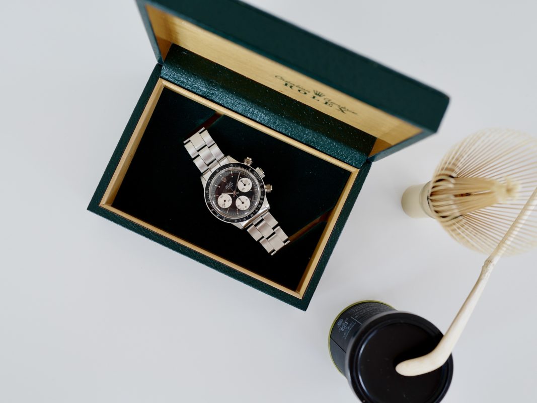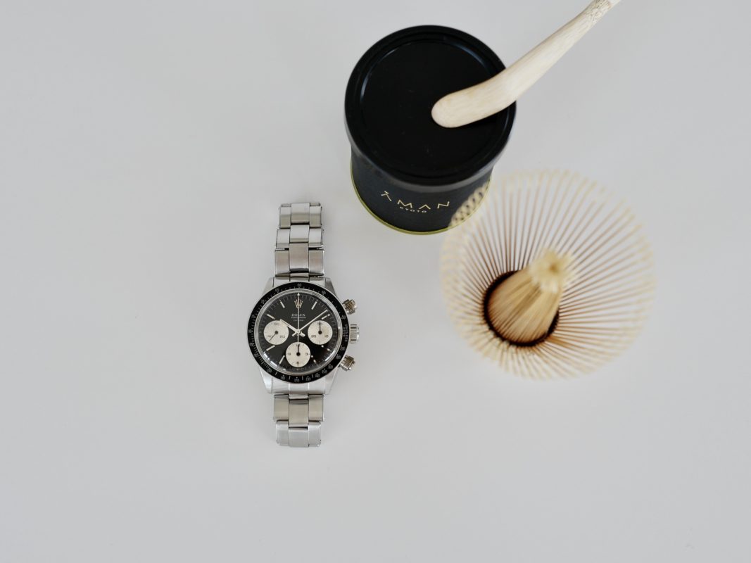 ロレックスを代表するデイトナと茶筅・茶杓、茶碗・掛け軸。いずれも今も変わる事なく愛され使われているという事実。素材も一緒、用途も、所作も、もちろんデザインも。素直にすごいと思う。