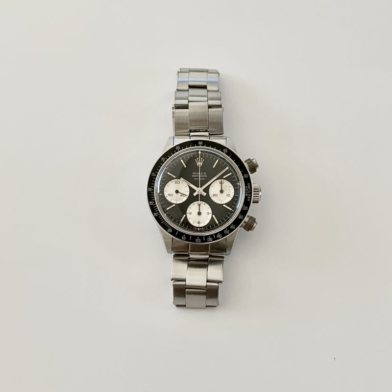 上のデイトナはリファレンスが6240、プロトタイプとも言われてますが、初めてネジ込み式のプッシャーが装着されたモデルでもあります。1965年頃から数年作られた6240は短命で姿を消します。