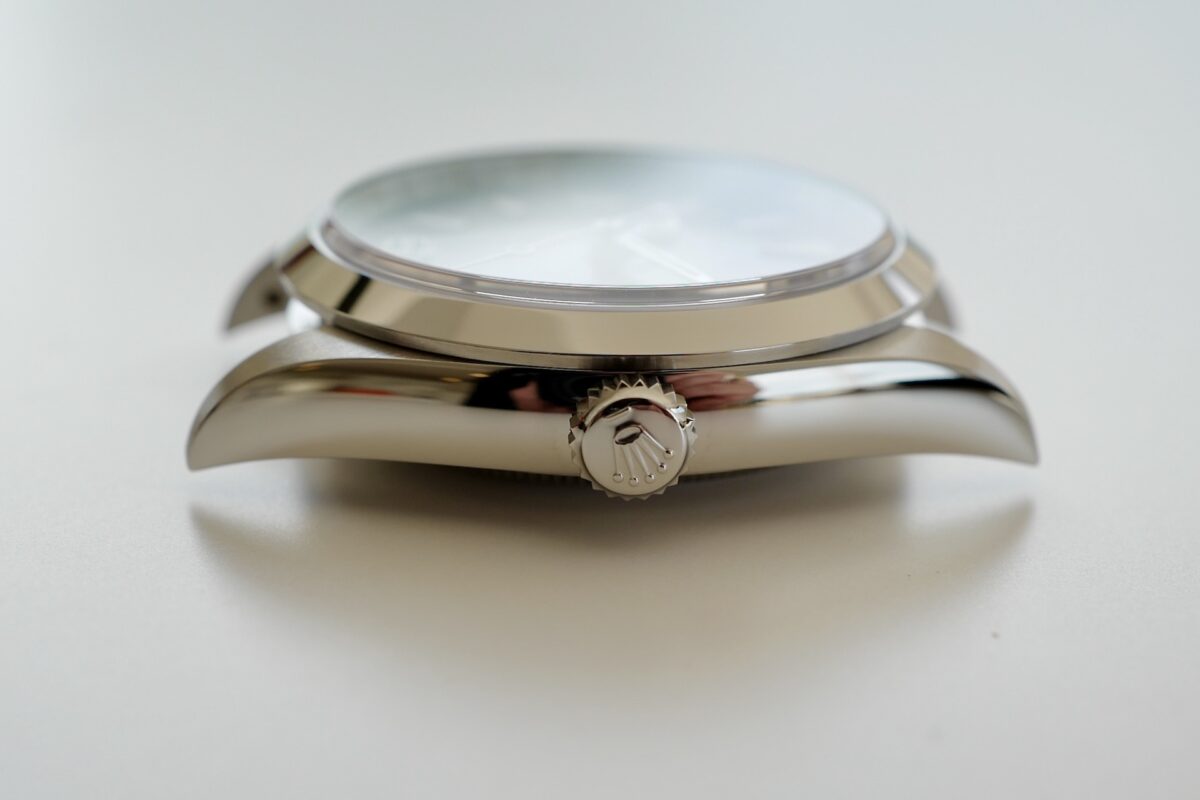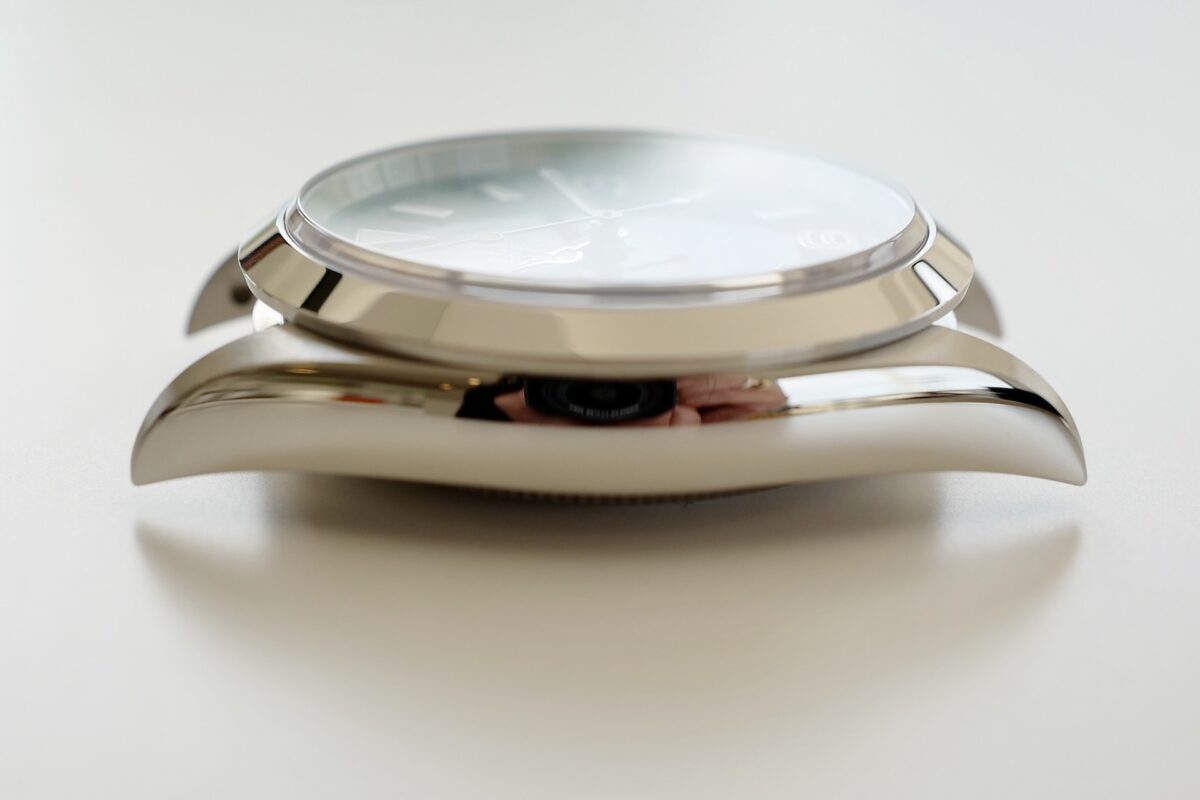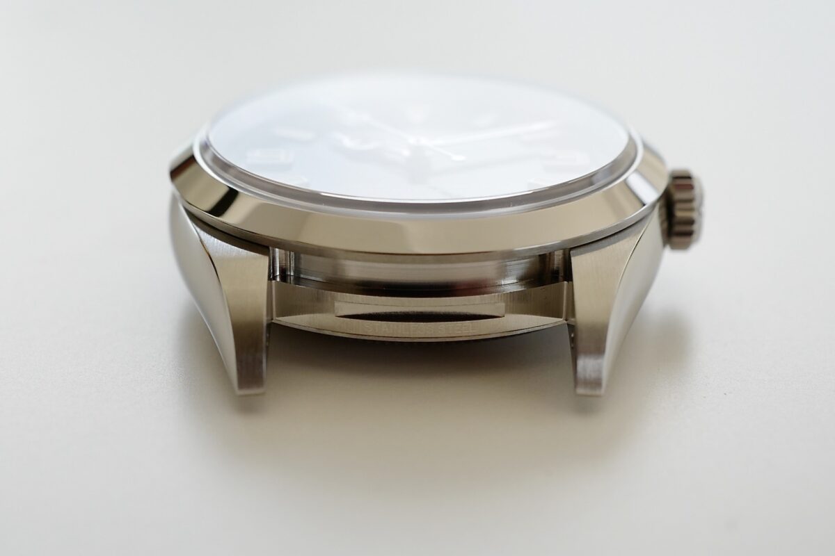 まずはベゼルが分厚くなりサファイヤクリスタルの傾斜もベゼルの傾斜に合っている為、美しく一体化していてバランスが良いです。そしてケースはコロッとした感じでこちらも少し厚目かな、と。絶妙にデザインのバランスを取ってます。