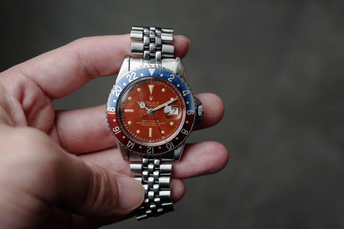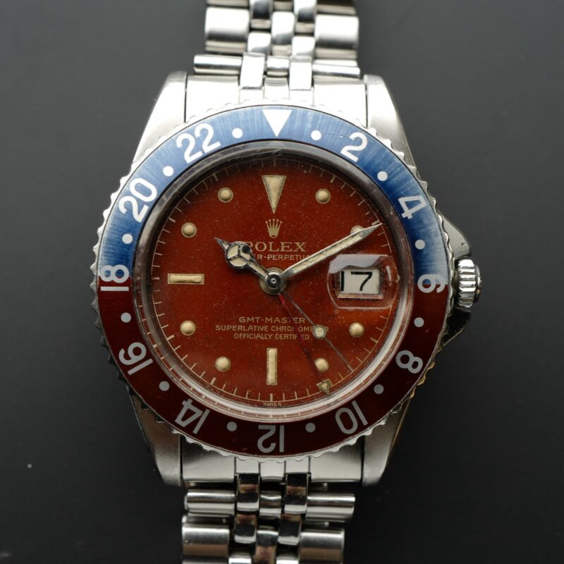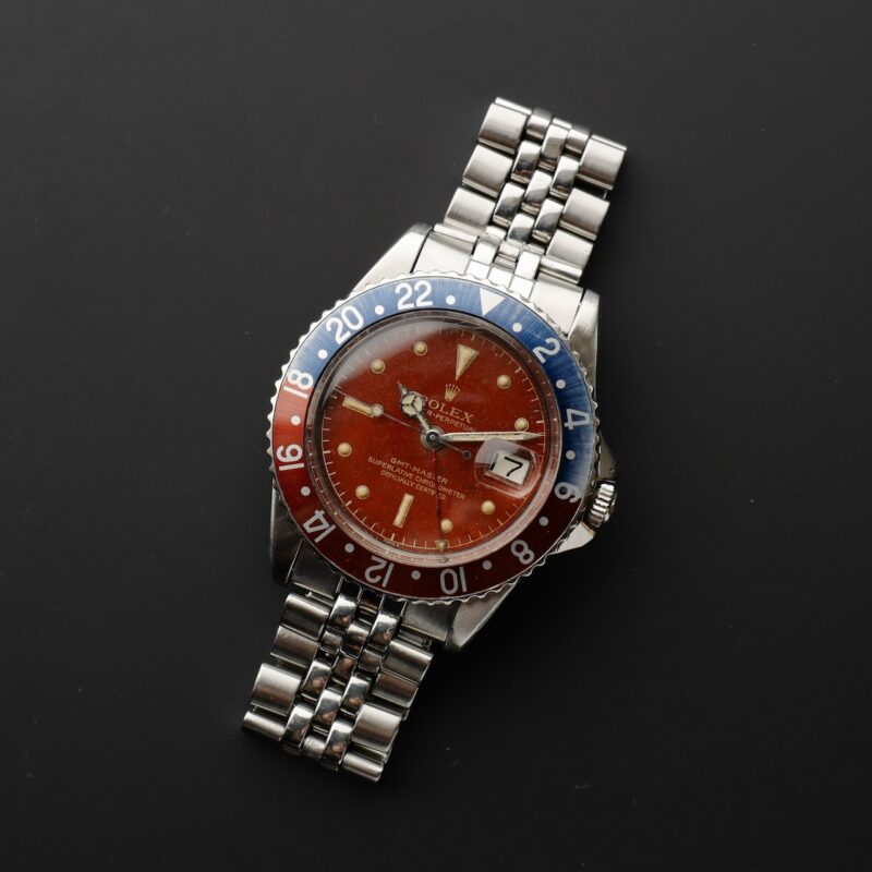 久しぶりにGMTマスター1675のミラーを手に入れる機会に恵まれました。それもちょっと珍しいトロピカルダイヤル。時計自体は、1960年製のRef.1675のポインテッドクラウンガード(PCG)、ミラーのマーク1ダイヤルです。