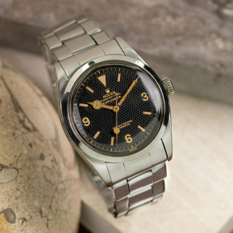 このEX1 ref.6350の分針には注射針が使用されています。その他ハニカムダイヤル、ロングメルセデスハンド、ドットが大きい秒針等、かなりの要素が詰まった1本ですね。