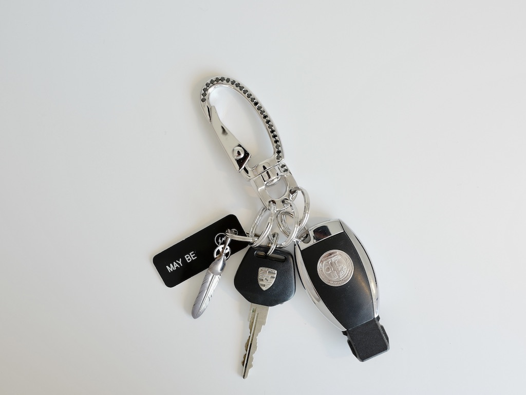 こちらはシルバー925にダイヤモンドをジュエリーを作る工程と全く同じ技法で、一つ一つ職人がセッティング。石の数も増やしています。キーリング部分のジョイント有りのタイプとなります。