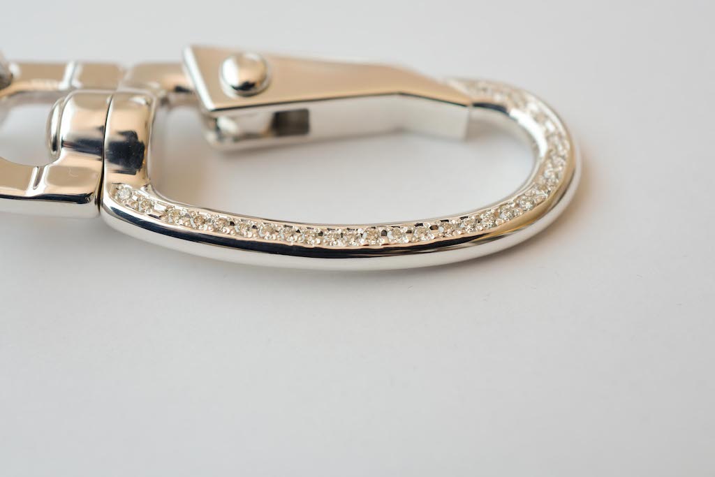 こちらのカラビナに関しましては、ギャランティーカードを発行しますので、傷・石取れ・機能的な故障等、永久に格安にて修理可能となっております。時計のオーバーホールの様にメンテナンスや故障を修理しながら長くお使いいただける様に配慮しております。