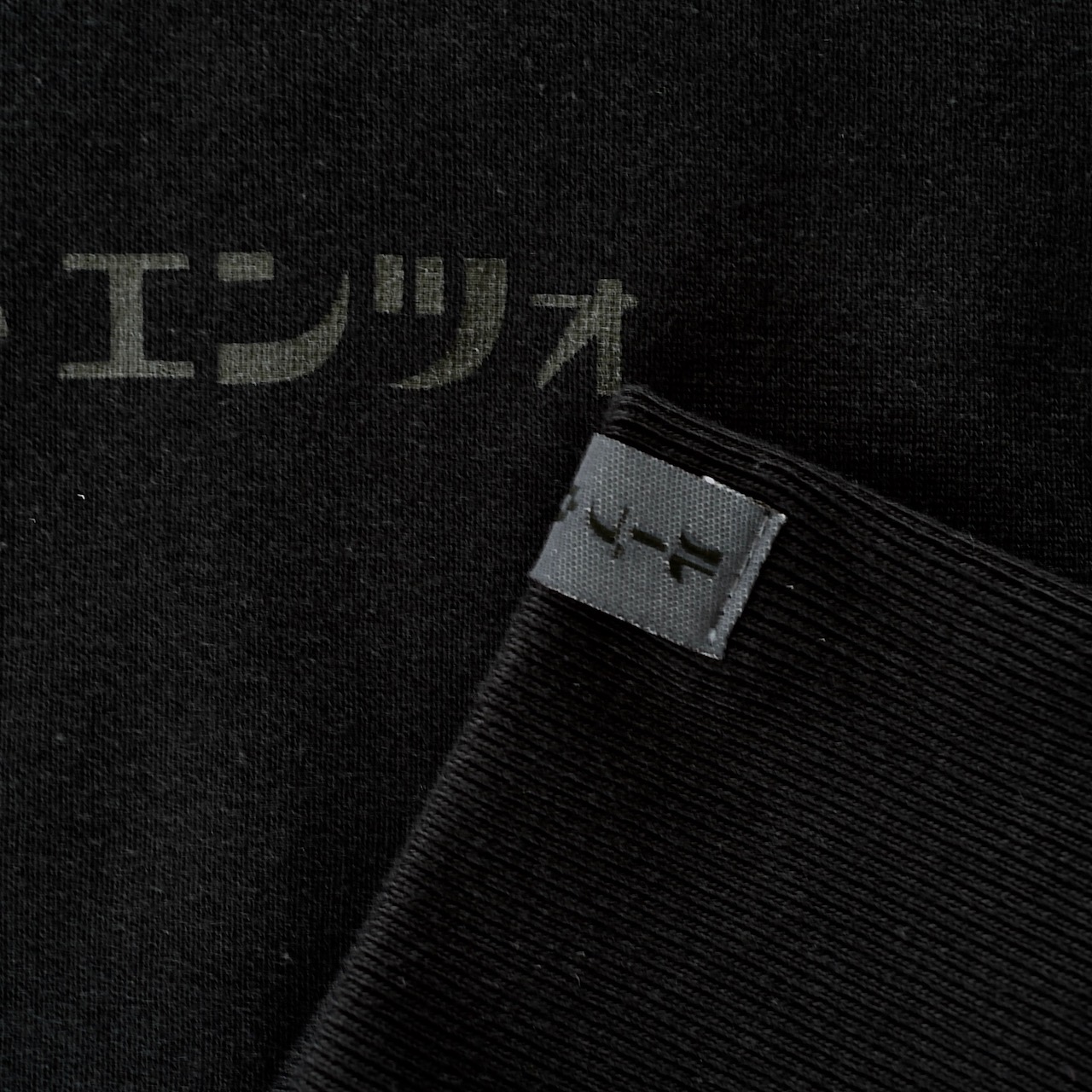 カラーはブラックのみ。プリントも全て黒。タグも黒。