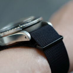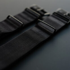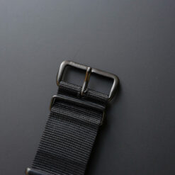 当店の定番であるNATO G10ストラップのマットブラック仕様。留め具をマットブラックにする事で、より精悍でクールな印象に。