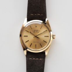 ROLEX Air-King 5500 14KYG with Guarantee & receipt. 珍しい金無垢のエアキング1975年製シグマダイヤルです。あまり使用感も無くて、文字盤のコンディションも抜群に良く、なんと購入時のレシートと証明書(多分当時のインボイスの代わり)、そしてギャランティーが付属します。エアキングの金無垢は珍しいので、この機会に是非!14KYGオイスターリベットブレスはオプションです
