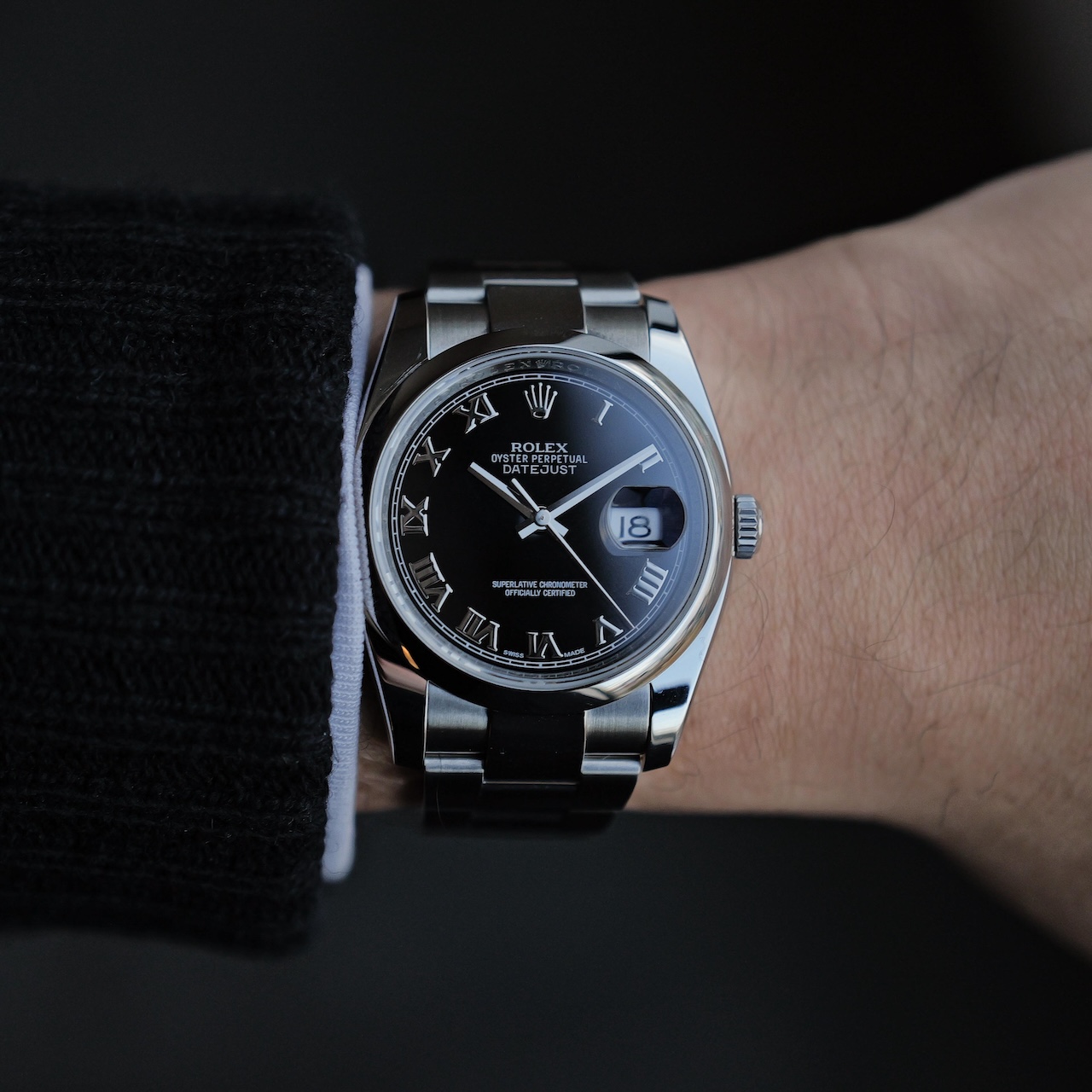 ロレックス/デイトジャスト/116200/ランダム品番/ブラックローマンダイヤル/保証書付きフルセット/ROLEX DATE-JUST Ref.116200 Black Roman Dial 2012Y with Paper