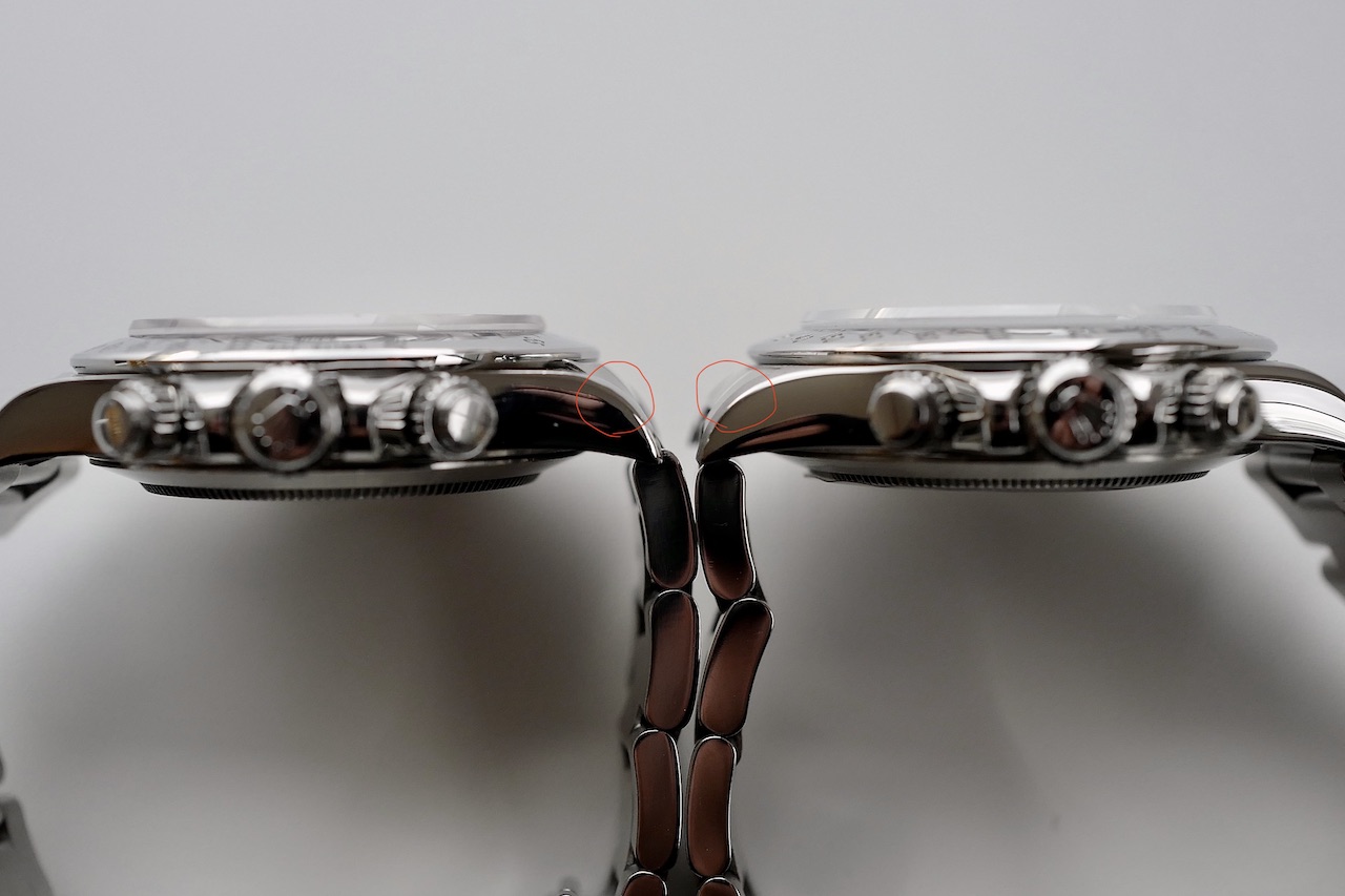 確かにケースサイドから見ると、特にラグの部分が分厚く、そして太く見えますね。