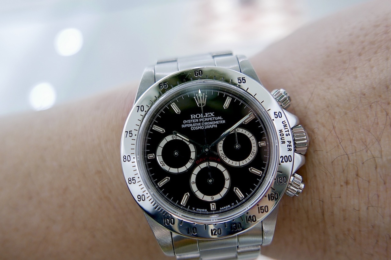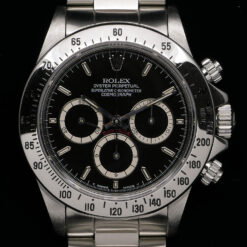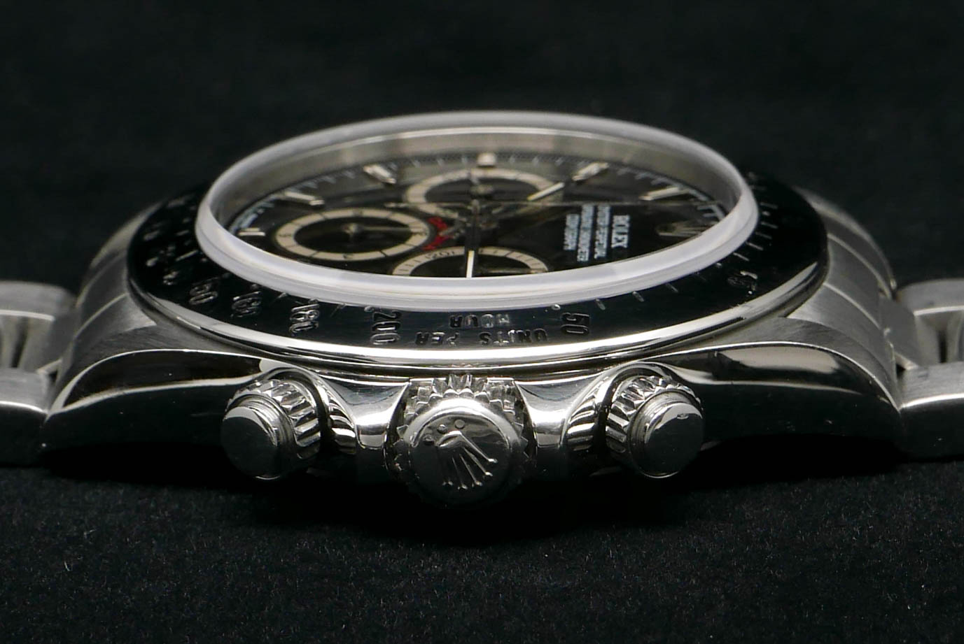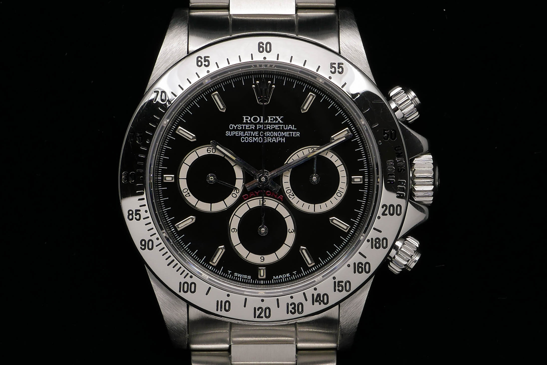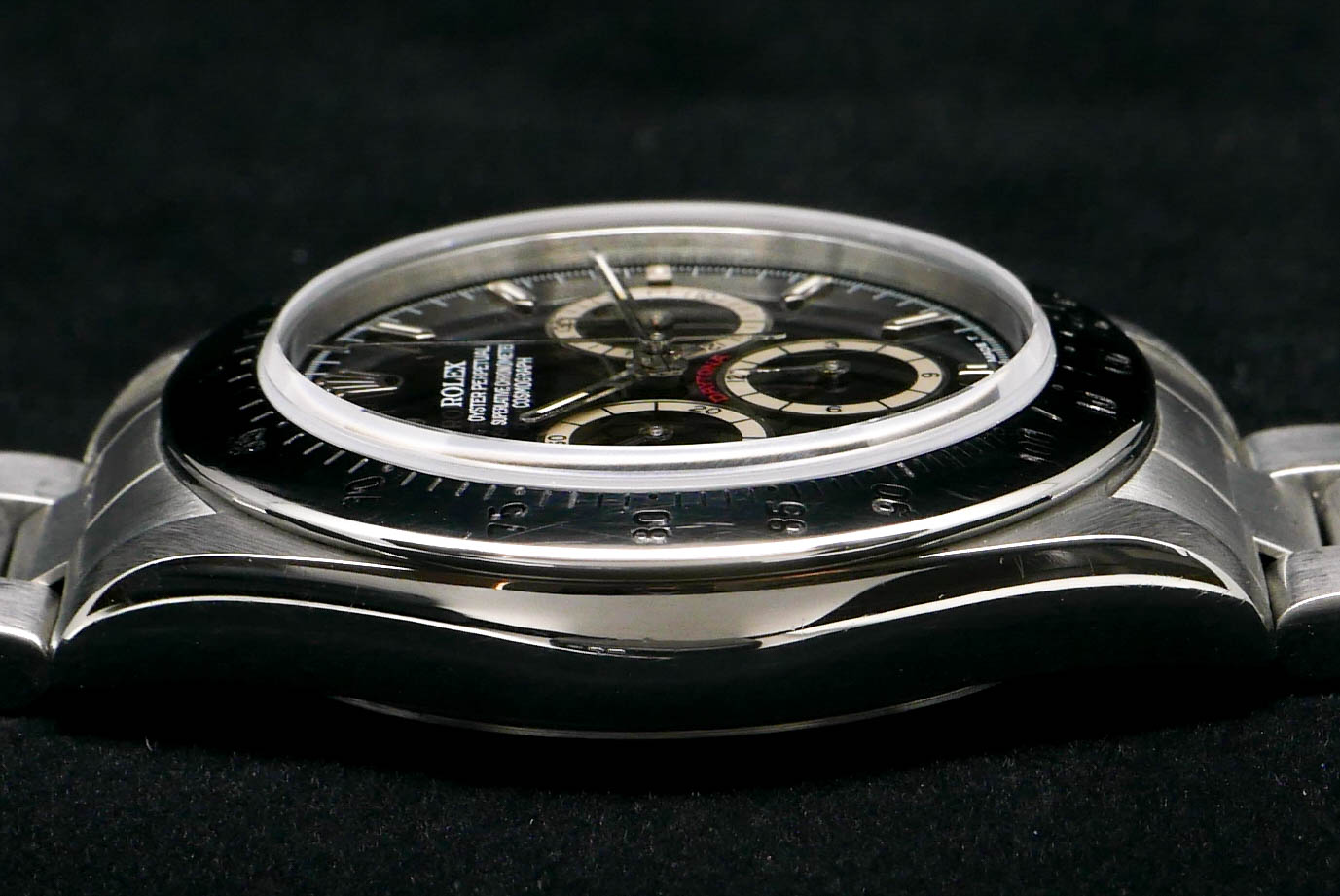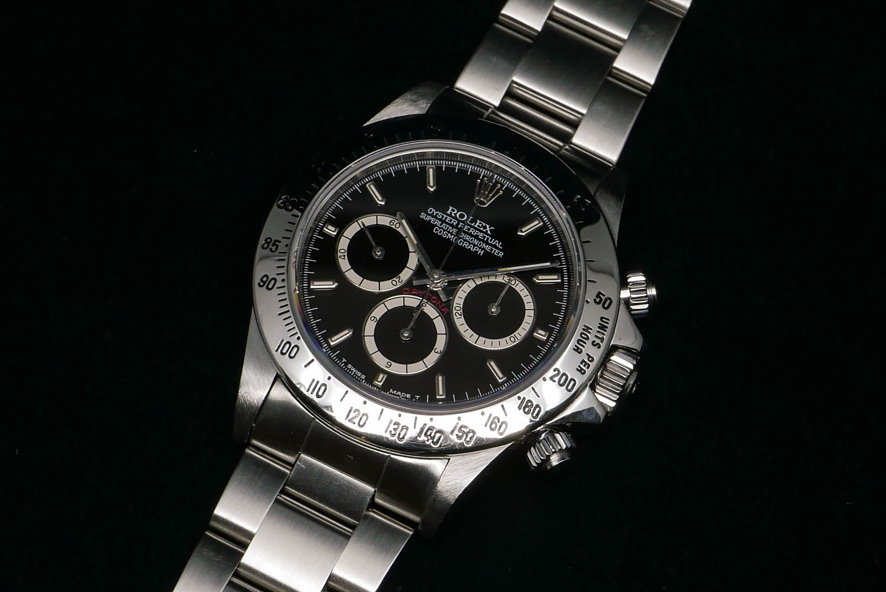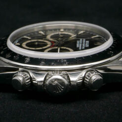 ZENITHムーブメント搭載の初期モデルRef.16520の4ライン、マーク1ベゼルの優良個体。マーク1ダイヤルが一般的にフローティング、いわゆる段落ちと言われるもので、次に僅かに12時位置の文字列が一行無い4列のものが。通常は5列ですがこの期間のみ4列のバージョンが御座います。” Mark 2 “ダイヤルに分類されます。