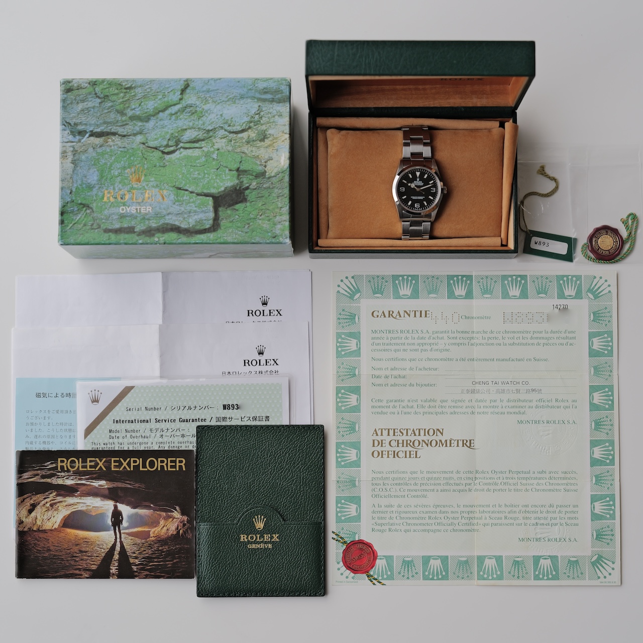 付属品は国際保証書、オーバーホール証明書、赤タグ、グリーンタグ、当時の外箱と内箱のフルセット。個人的には、1016も好きですが、毎日気にせずガシガシ使うなら14270がいいのかなと思います。フルセットならなおよし。