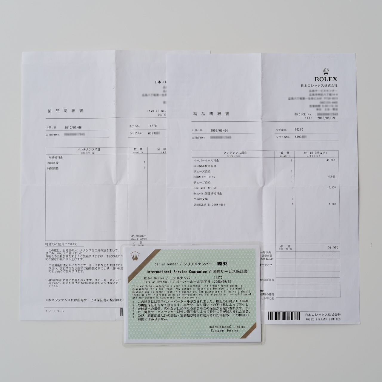 Included is a full set of international warranty card, overhaul certificate, red tag, green tag, and outer and inner boxes from the period. Personally, I like 1016, but I think 14270 is better for daily use without worrying. The full set is even better.