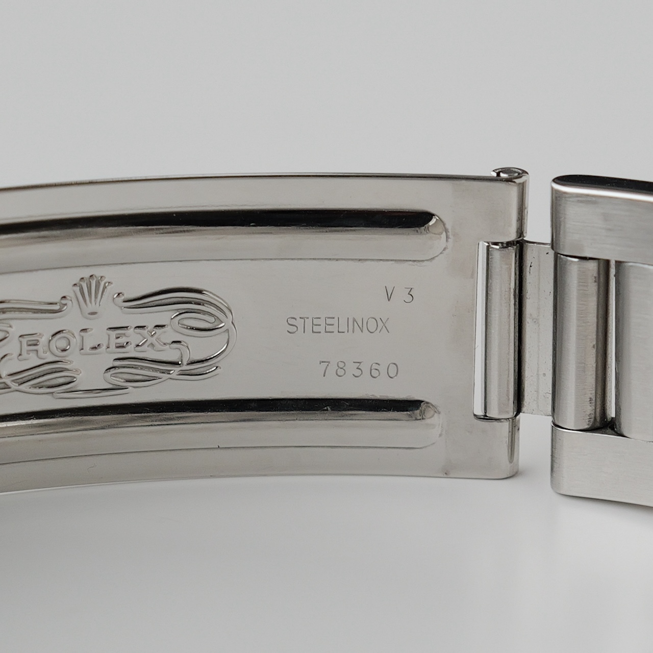 針とダイヤルはオリジナルのトリチウム夜光。ブレスレットは前期のシングルバックル。サファイアクリスタルの風防は6時と11時位置に若干の欠けがありますが、目で見て気にならない程度です。王冠透かしマークのない当時のもの。