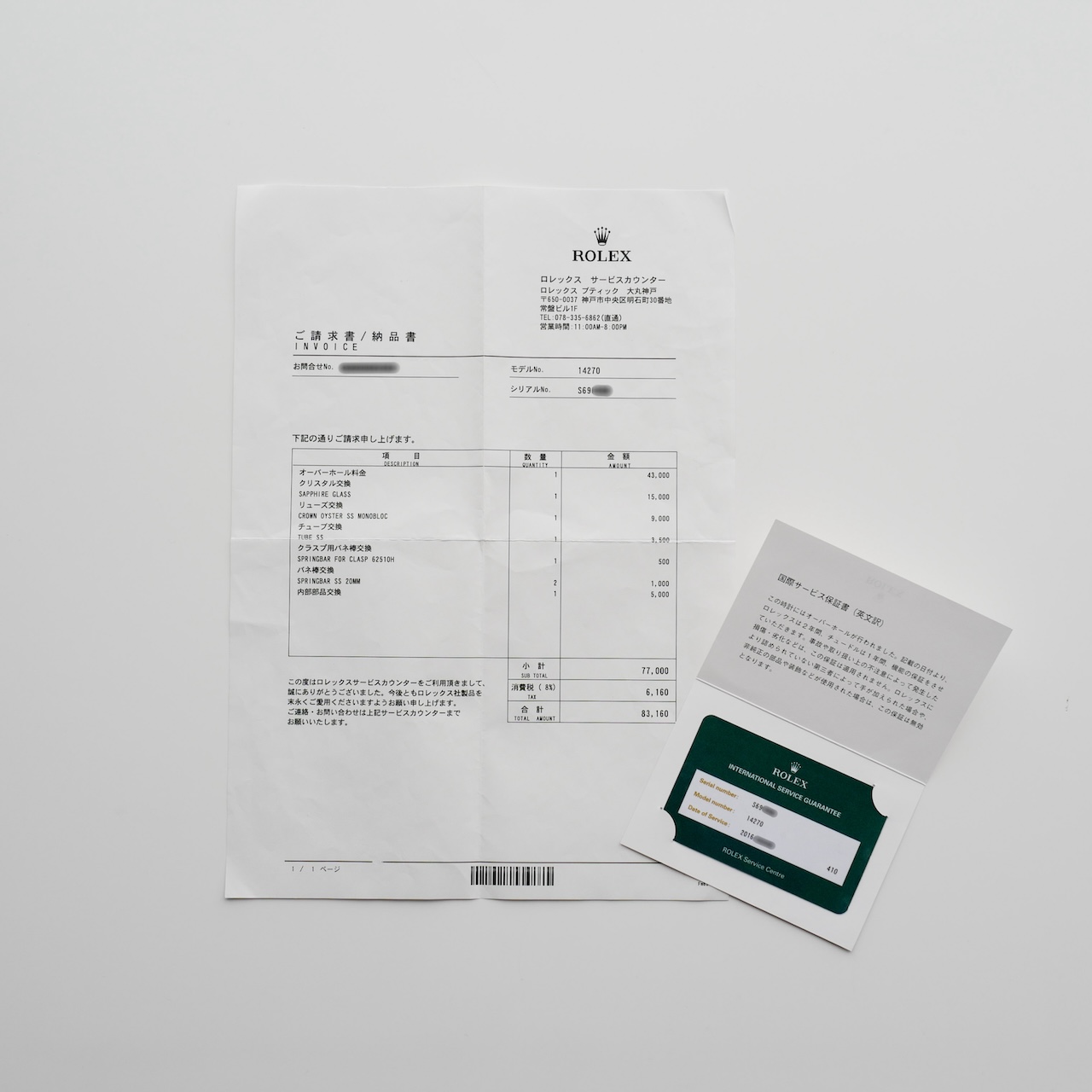 みんな大好きなエクスプローラー1 Ref.14270のオールトリチウム・シングルバックルの入荷。2016年に日本ロレックスにてオーバーホールを行なっている優良個体です。文字盤・針・ブレス含め当時のオリジナルコンディションを維持しています。