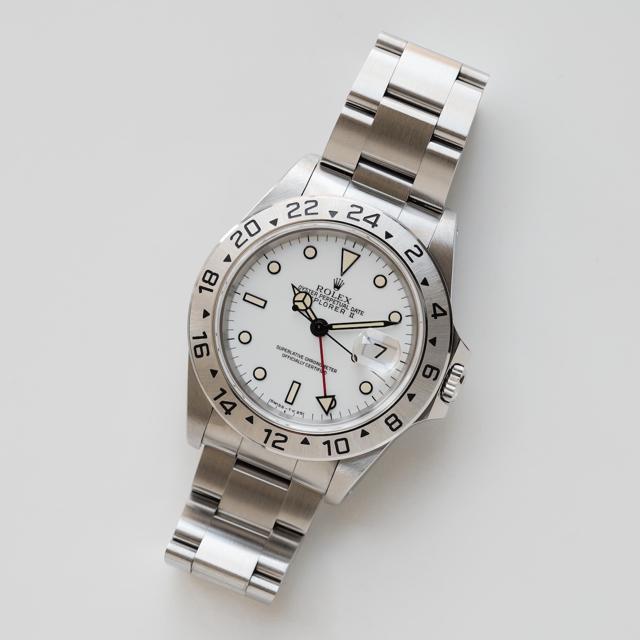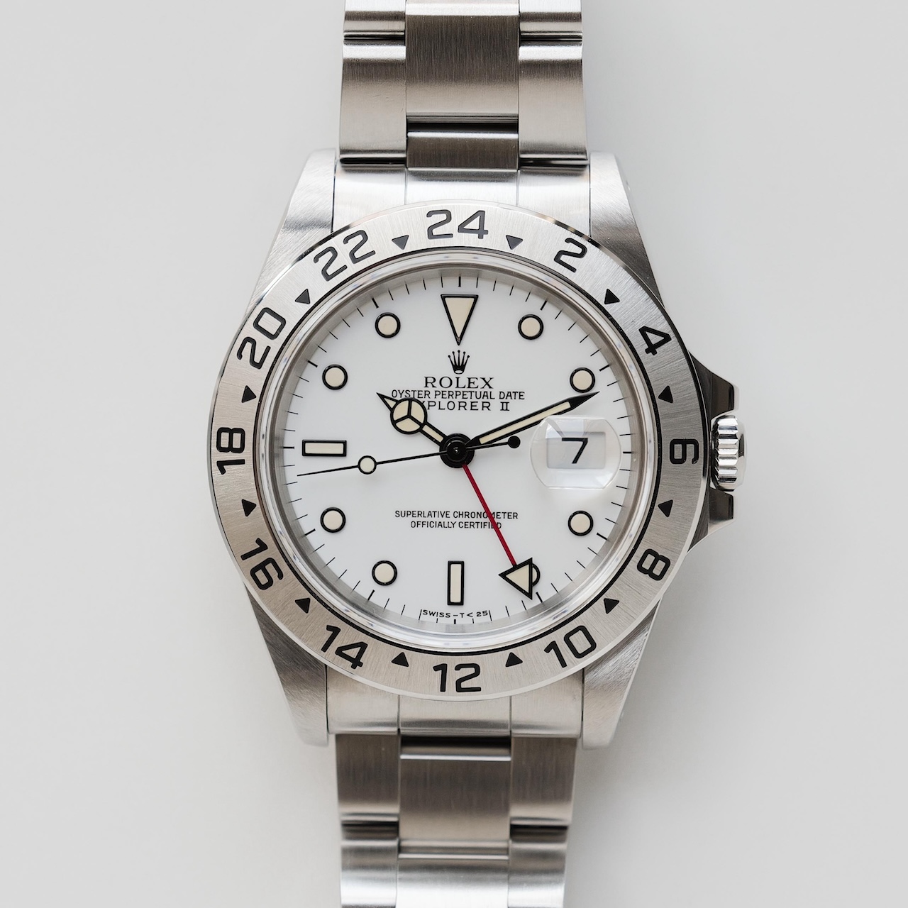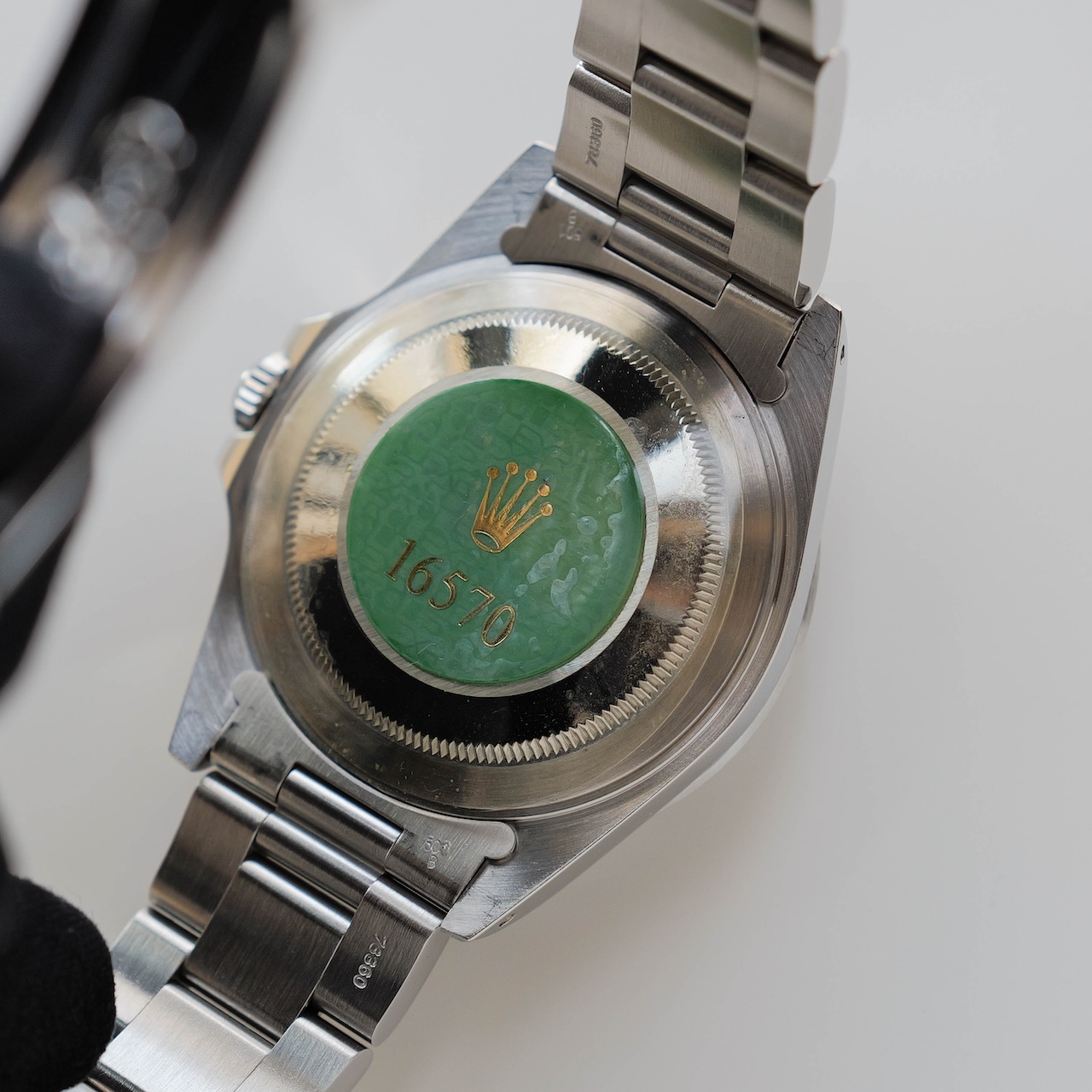 ロレックス/エクスプローラー2/16570/S番/パティーナダイヤル/オールトリチウム/シングルバックル/裏蓋シール/ROLEX EXPLORER2 Ref.16570 “Patina” White Dial All Tritium Single Buckle 1993-94y