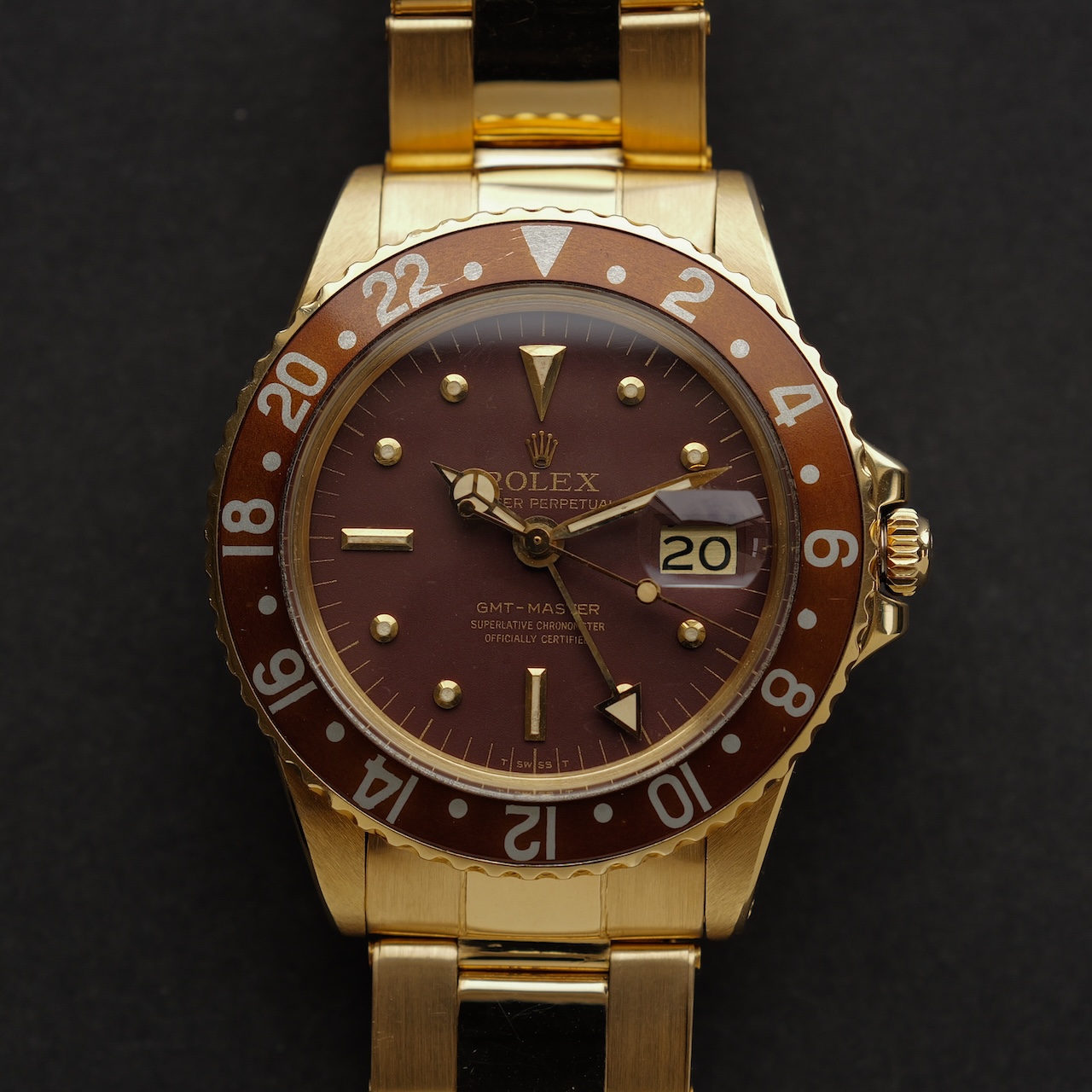 GMT-MASTER1675/8Brown nipple dial with Rivet bracelet. We have a 1675 solid gold teapot in excellent condition. It has a silver font bezel insert, an original 18K rivet bracelet with no stretching, and a dial and hands without a single blemish, making it a flawless and beautiful piece no matter how you look at it. Just like the solid gold manual winding Daytona, it can be purchased for the same price as a stainless steel mirror, so if you’re going to buy it, now is the time…