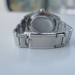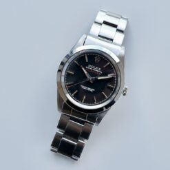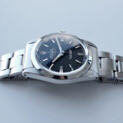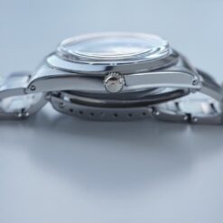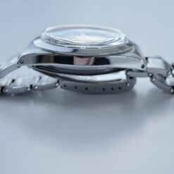 非常に綺麗で極めて珍しいリファレンス1019の初期1968年製の黒文字盤です。初期の黒文字盤は秒の刻みが細かい(0.2秒刻み)事や6時位置のクロノメーター表記の横幅が短く、そしてセンタースプリットになっているのが特徴です。時針・分針は中央が三角に立体的に盛り上がったタイプとなります。