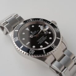 約20年以上に渡り作り続けられた16610ですが、各部の仕様を変更しながら、最終形がこのモデルとなります。ケースに横穴が無くなり、夜光がルミノバに変わり、ルーレット刻印が入り、ブレスのクラスプ部分が変わり…という具合に。最後に全て変わったこのモデルが16610の上がりですね。リファレンスの刻印や裏蓋の刻印にも特徴あります。(商品ギャラリーの最後の方をご参照ください)