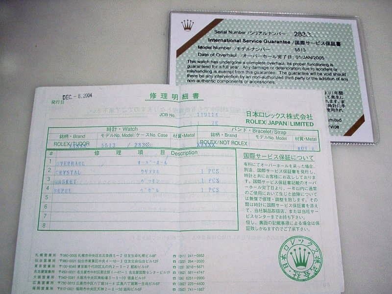 This particular watch was overhauled by Rolex UK in 1998, and Rolex Japan in 2004.