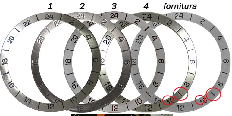 時計全体の印象を左右する24時間ベゼルは4タイプ製造されており、製造年によってダイヤルとの組み合わせ方が変わってきます。Mk1ダイヤルとMk1ベゼルの組み合わせは、ベゼルの製造期間がおおよそ1年と最も短いため、数ある組み合わせの中で最も希少です。